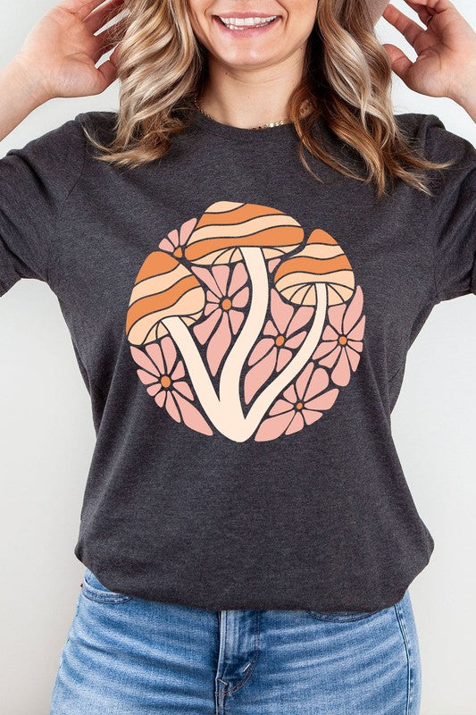 The Whimsical Mushroom Floral Basic Graphic Tee from Kissed Apparel blends nature-inspired charm with an abstract artistic touch. Featuring a unique design of mushrooms and florals, this tee is perfect for customers who love playful, earthy aesthetics. Made from soft, high-quality fabric, it offers a comfortable, relaxed fit ideal for everyday wear. A must-have for boutiques and retailers, this tee adds a trendy, whimsical feel to any collection. Stock up now and bring a touch of abstract nature to your lineup!