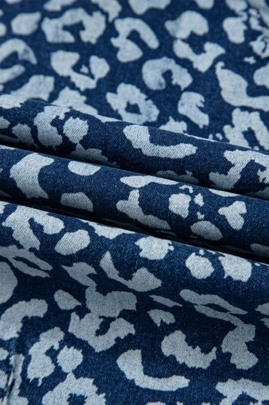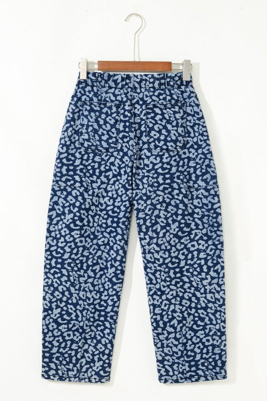 Leopard Drawstring Elastic Waist Pocketed Jeans